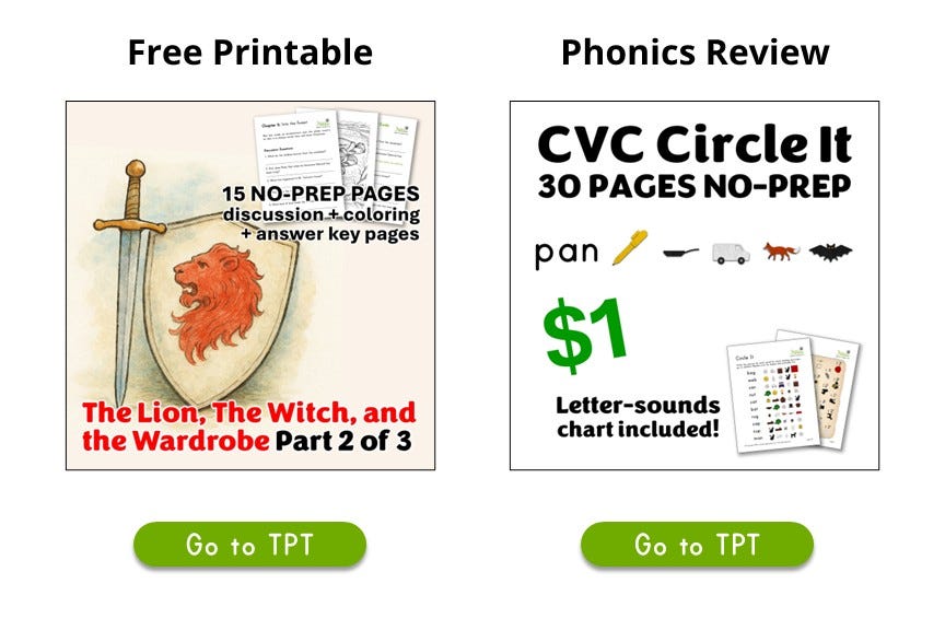 The Free Printable this week is the second in a three-week series that goes chapter-by-chapter through The Lion, the Witch, and the Wardrobe.
