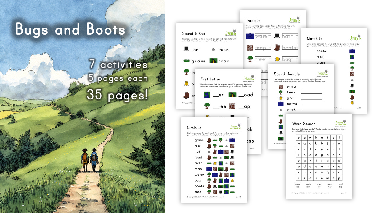To celebrate hiking, this week’s printable is called Bugs and Boots, and it’s all about words for hiking!